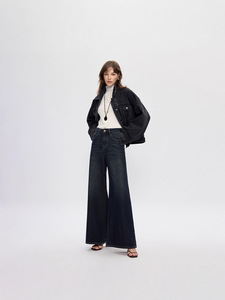 凯林复古蓝大阔腿裤女2025秋季新款无弹宽松直筒垂感拖地牛仔长裤
