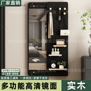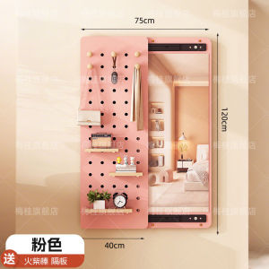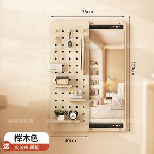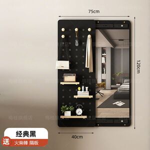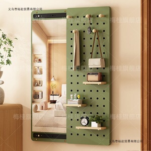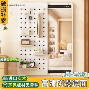 穿衣镜壁挂实木洞洞板出租房推拉全身镜客厅衣帽架家用置物架