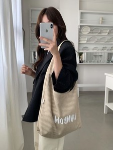 新款格纹字母刺绣单肩包大容量帆布托特包时尚百搭手提包电脑包