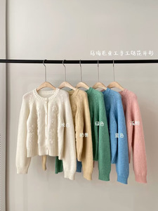 木四马海毛手工绣花针织衫女温柔风开衫秋冬女装韩系刺绣外套6536