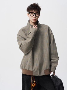千鸟格外套男2025春季新款美式高街痞帅宽松休闲老钱风舒适夹克