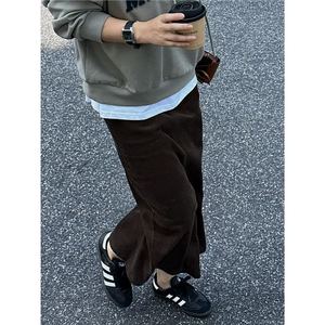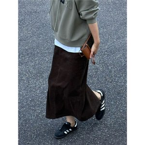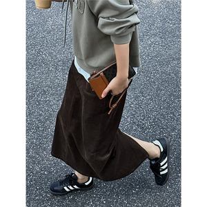 23560复古咖色开叉直筒a字灯芯绒半身裙女春秋冬中长款工装包臀一
