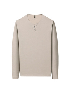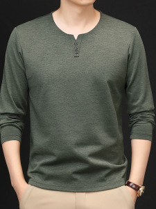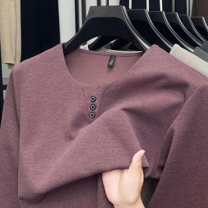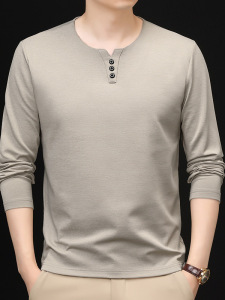 2025直播爆款长袖T恤男秋装休闲百搭舒适打底上衣中青年男T恤V领