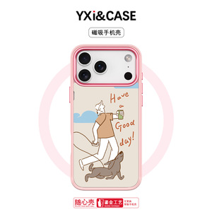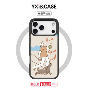 适用苹果17手机壳高级感16可换背板15promax磁吸手机壳遛狗小伙