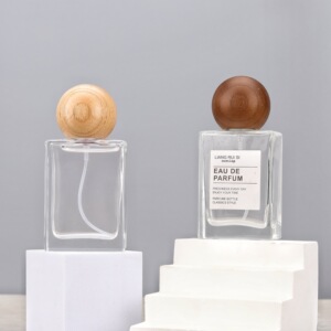 F092C-50ML香水分装瓶便携式30ml 四方 玻璃喷雾瓶替换空瓶胡桃木