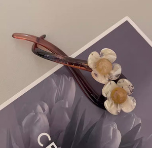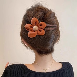 8#咖色毛线花朵12cm鸭嘴抓夹
