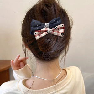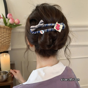 1#牛仔蓝+红条纹双蝴蝶结鸭嘴夹