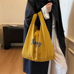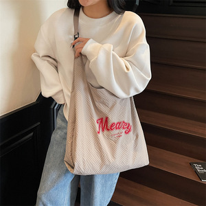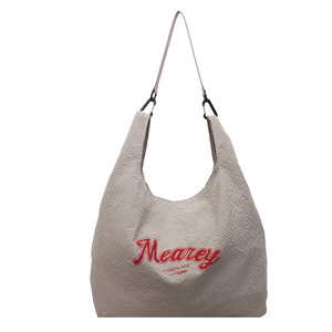 韩版大容量帆布腋下包女2025秋冬新款字母手提托特包潮百搭单肩包