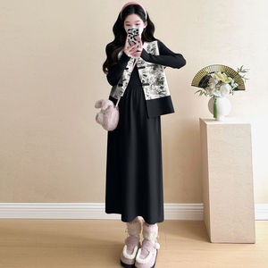 孕妇连衣裙套装秋冬季外穿针织打底裙毛衣马甲上衣两件套秋冬装女