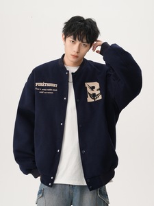 美式复古字母刺绣夹克男女春季高街痞帅棒球服宽松百搭情侣上衣潮