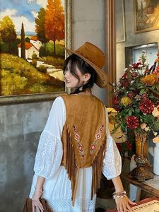 超好看~波西米亚复古流苏刺绣马甲外搭旅行度假穿搭短背心上衣女