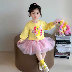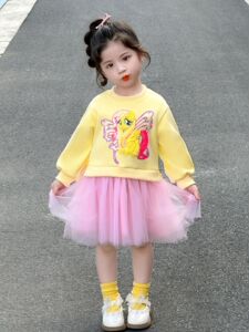 女小童连衣裙春秋2025新款儿童洋气公主裙秋季小女孩网纱卫衣裙子
