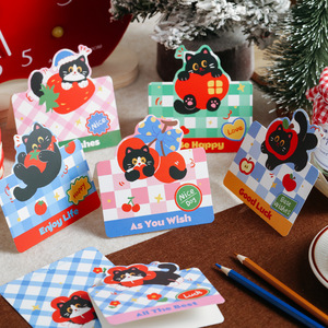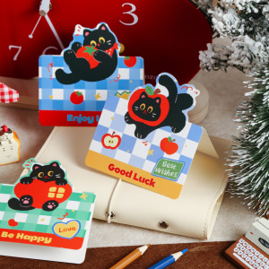 软萌小黑猫折叠小贺卡创意可爱留言卡片送朋友同学手写祝福小卡片