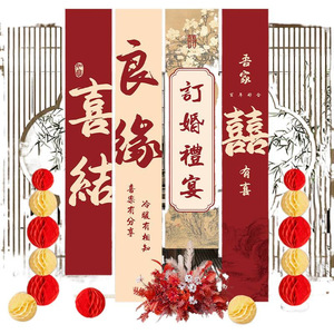 订婚挂布氛围装饰结婚礼婚条幅高级感场景布置背景墙全套用品牙粉
