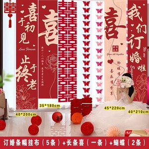 网红套餐款【我们订婚啦一套+长条喜一条+蝴蝶2条】