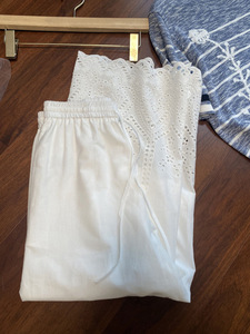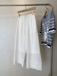 巨巨巨好穿!秋夏季清爽~高腰抽绳缕空刺绣工艺八分阔腿休闲裤女