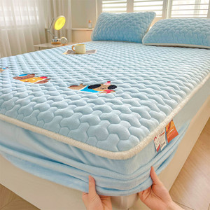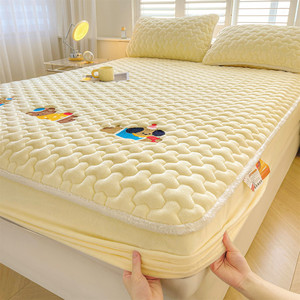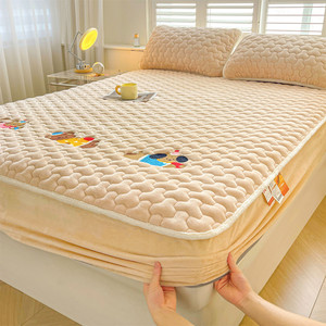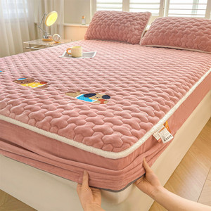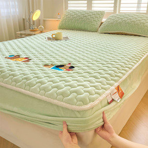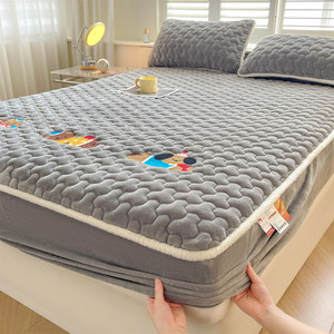加绒牛奶绒夹棉床笠单件秋冬季加厚珊瑚绒毛床垫保护套床罩三件套