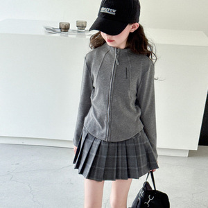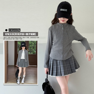 女童套装春秋2025新款中大童长袖开衫上衣韩版格子短裙两件套洋气