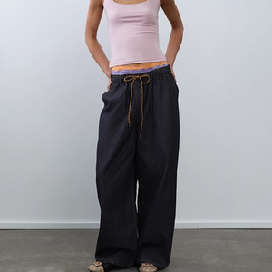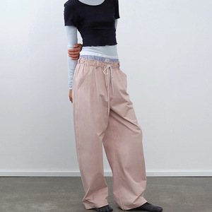 RAREL 轻松抽绳阔腿长裤 原牛/柔粉2025高腰显瘦窄版直筒裤