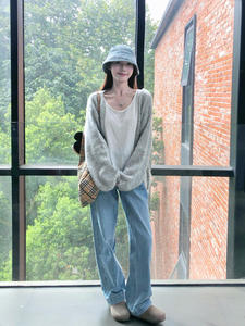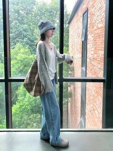 2025新款韩系穿搭灰色针织开衫女秋春宽松慵懒风毛衣外套百搭上衣