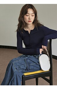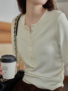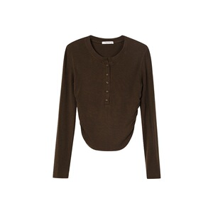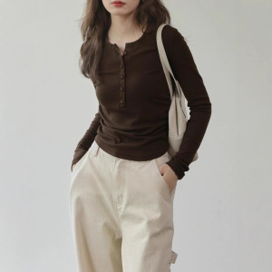 【现货】1313骨感!美拉德风长袖棕色打底衫T恤显瘦内搭亨利领上衣