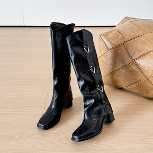真皮~可拆卸两穿裤筒靴女2025秋冬裤管靴V口长筒靴瘦瘦靴胖mm加宽
