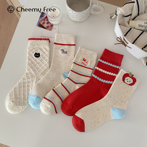 CHEEMY FREE秋季新款韩系少女卡通中筒女袜可爱小兔子ins堆堆袜