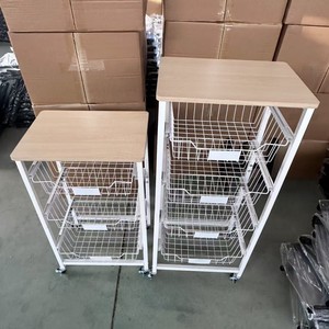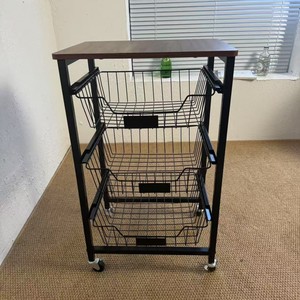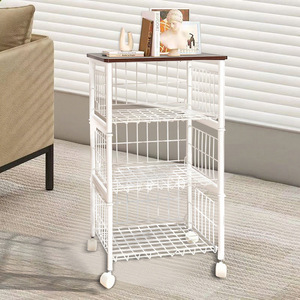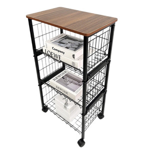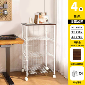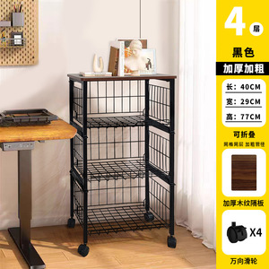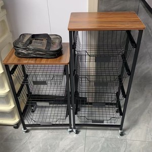 跨境新款现代碳钢置物架滑轮可移动多层蔬篮夹缝架水果篮杂物收纳