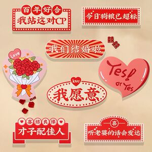结婚手举牌氛围拍照出片小道具接亲伴娘伴郎合影婚礼游戏手持板