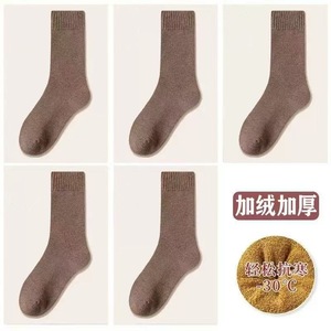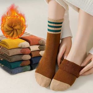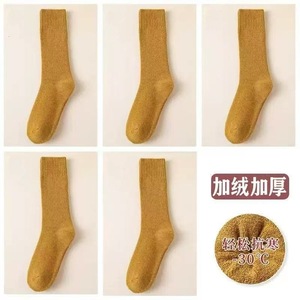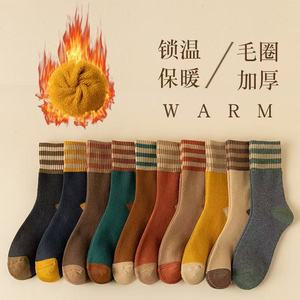 男女同款条纹毛圈中筒袜保暖加绒加厚毛圈雪地袜冬季弹力舒适柔软