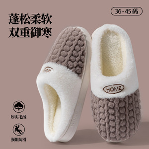 秋冬季新款毛绒棉拖鞋女士防滑厚底情侣保暖棉拖鞋男工厂批发冬天