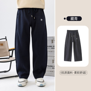 男童运动裤秋冬季加绒儿童街舞卫裤直筒垂感阔腿长裤学生裤子秋款