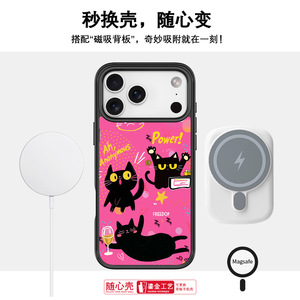 适用苹果17pro手机壳高级感16可换背板15promax磁吸手机壳酒鬼猫