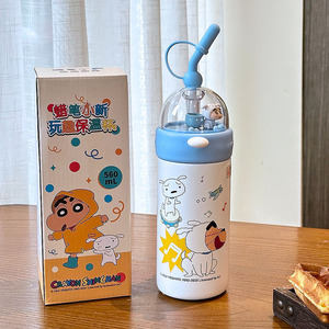 蜡笔小新篮球保温杯2025新款女高颜值可爱吸管杯子儿童大容量水杯