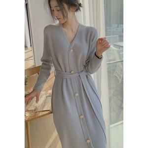 连衣裙秋季女装春秋新款慵懒风毛衣裙子中长款针织衫宽松遮肚