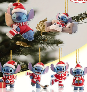 跨境temu希音新款史迪仔圣诞装饰汽车装饰挂件平面亚克力2D挂牌