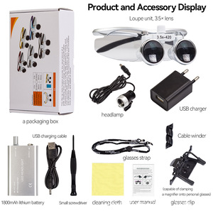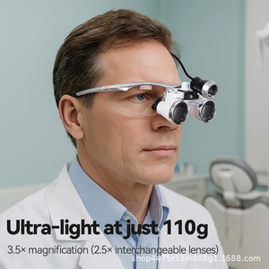 牙科带LED灯放大镜2.5/3.5倍红色头戴式医疗口腔耳鼻喉设备放大镜