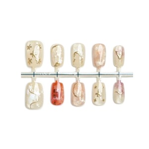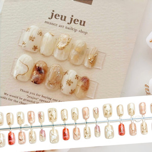 鎏金花卉精致氛围感ins小众穿戴甲晕染细闪日式美甲贴片猫眼琥珀