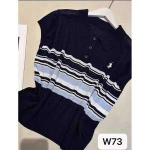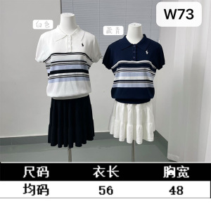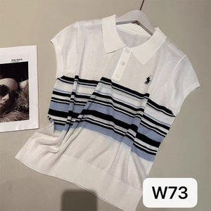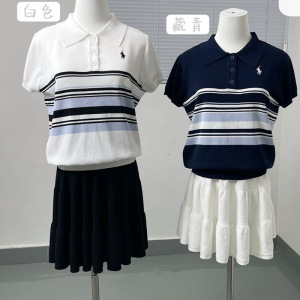条纹翻领针织设计感时尚百搭短袖上衣女装毛织衫外贸跨境工厂批发