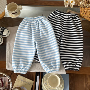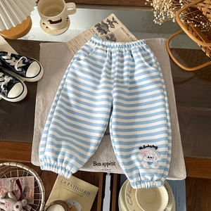 【现货】QK259618女童童裤2025秋季新款韩条纹小狗刺绣休闲束脚裤