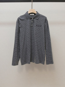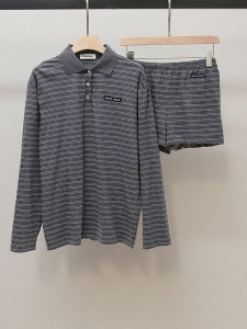 深圳南油高端女装秋季新款休闲运动POLO翻领长袖上衣短款条纹套装