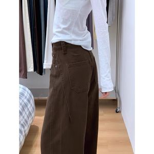 拖地新款潮春季阔腿牛仔裤女高腰显瘦咖色宽松裤子弯刀复古加长版