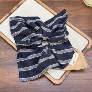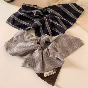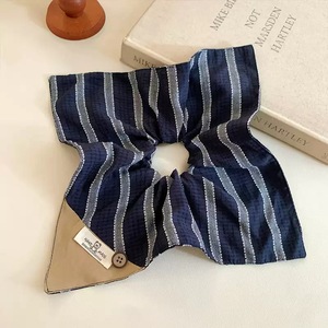 韩国藏青色条纹方巾大肠发圈女气质方形扎头发低马尾发绳头绳发饰