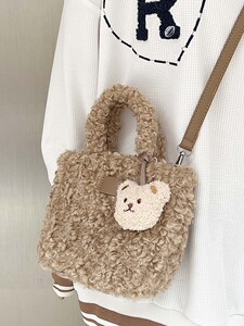 2025新款少女包包羊羔绒毛手提包mini休闲单肩斜挎磁扣毛毛小包