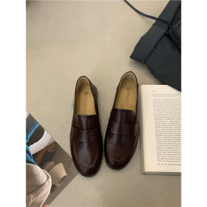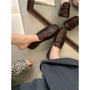 粗跟一脚蹬黑色小皮鞋女鞋2025春秋新款简约百搭软底舒适乐福单鞋