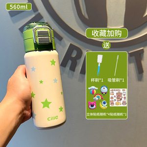 防摔杯套可斜跨+星星绿560ml+清洁工具+diy装饰