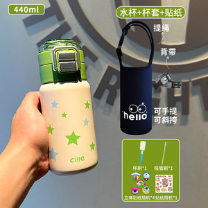 防摔杯套可斜跨+星星绿440ml+清洁工具+diy装饰