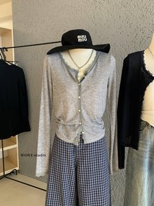WGWE6782#蕾丝拼接花边软糯面膜防晒针织开衫轻薄上衣针织开衫