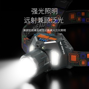 挥手感应带电显头灯伸缩变焦三色光源头戴灯聚泛光USB充电照明灯
