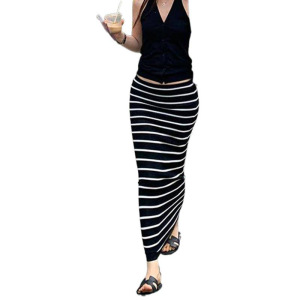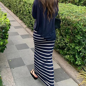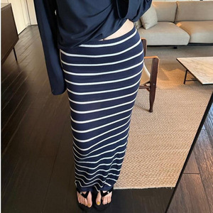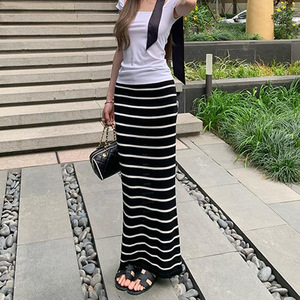 慵懒感条纹撞色休闲长裙女夏季新款韩版气质高腰显瘦百搭半身裙